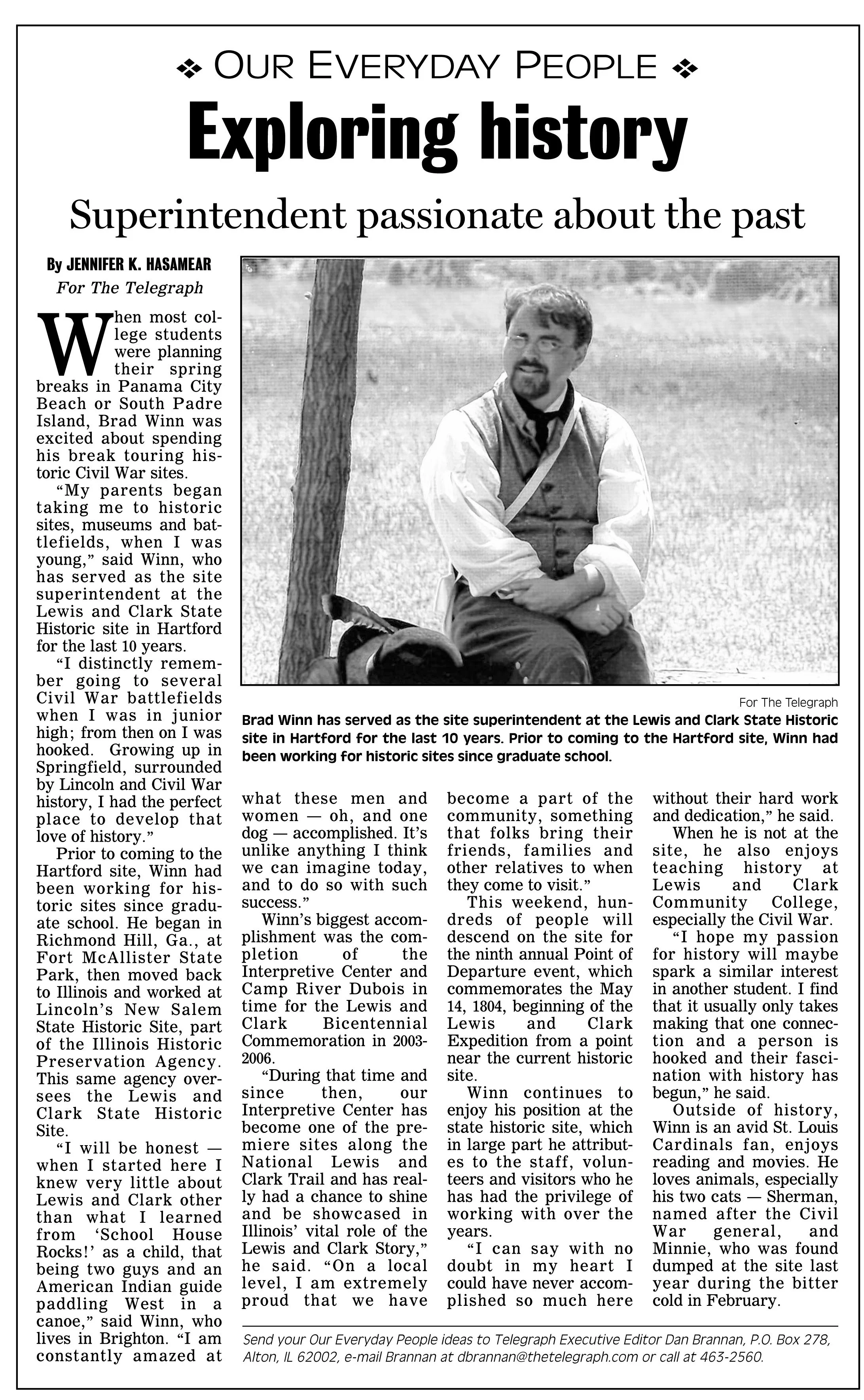 Brad Winn had served as the superintendent at the Lewis and Clark State Historic Site for the past 10 years. Throughout his career, his greatest achievement was completing the Interpretive Center and Camp River Dubois.